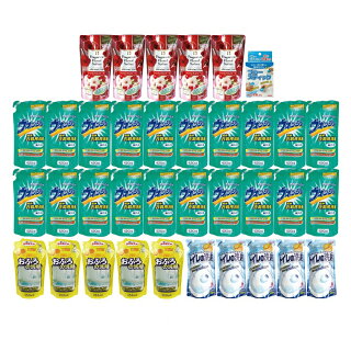 - 内容量 :液体タイプの衣料用洗剤ウォッシュ420ml(詰替)×20個・液体タイプの柔軟剤フレグランスフローラルソフタートロピカルローズ400ml(詰替)×5個・固形タイプで襟等の汚れ落とし専用の洗剤ブルースティック90g×2本を1個・おふろ用液体洗剤350ml(詰替)×5個・液体洗剤トイレ用洗剤350ml(詰替)×5個の計36個